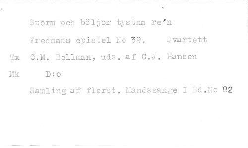 //// Storm och böljor tystna re'n Fredmans epistel No 39. Qvartett Tx C.N. Bellman, uds. af C.J. Hansen Kk D:o //// Samling af flerst. Uandssange I Zd.No 82