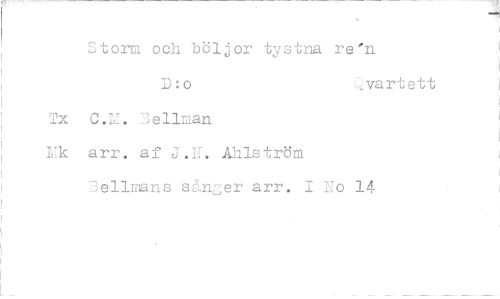 //// Storm och böljor tystna D:o //// C.M. Bellman //// arr. af J.N. Ahlström //// lellmans sånger arr. I //// re'n //// Qvartett //// No 14