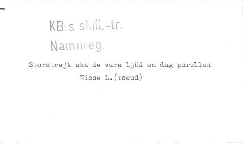 //// KB:S skiH.-tr. //// Namnreg. //// Storstrejk ska de vara ljöd en dag parollen Nisse L.(pseud)
