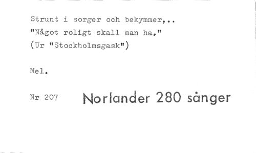 //// Strunt i sorger och bekymmer,.. "Något roligt skall man ha," //// (Ur "Stockholmsgask") //// Mel. //// Nr 207 koriander 280 sånger