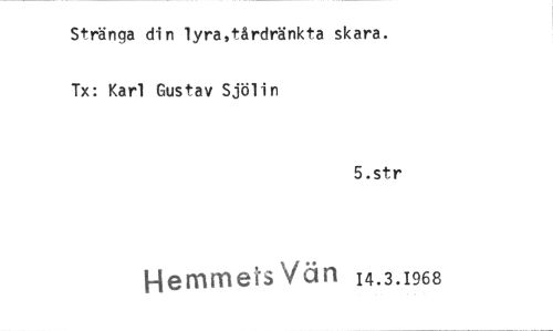 //// Stränga din lyra,tårdränkta skara. Tx: Karl Gustav Sjölin //// 5.str //// Hemmets Vän 14.3.1968