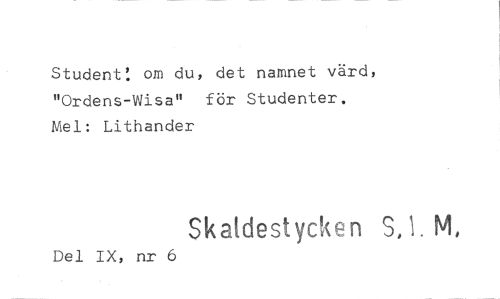 //// Student t om du, det namnet värd, "Ordens-Wisa" för Studenter. Mel: Lithander //// Skaldestycken S,1. M, //// Del IX, nr 6