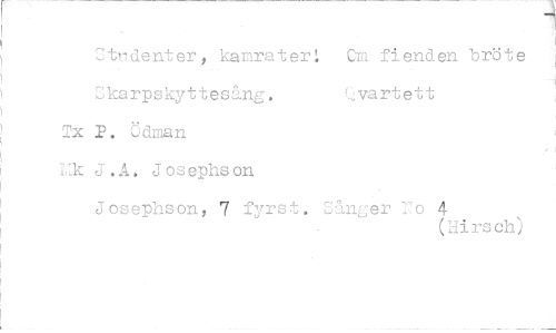 //// Studenter, kamrater! Cm fienden bröte //// Okarpskyttesång. vartett //// Ix P. Odman //// Hk J.A. Josephson //// Josephson, 7 fyrst. Sånger To 4 //// (Hirsch)