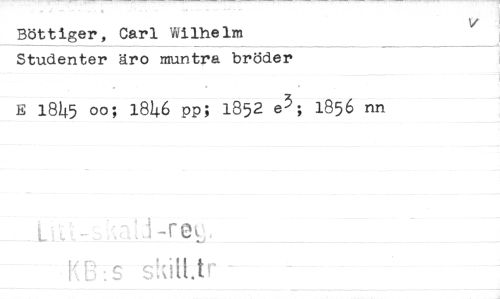 //// BOttiger, Carl Wilhelm Studenter åro muntra bröder //// E 18^5 °°) l8i+6 pp; 1852 e^; 1856 //// !' .s //// nn