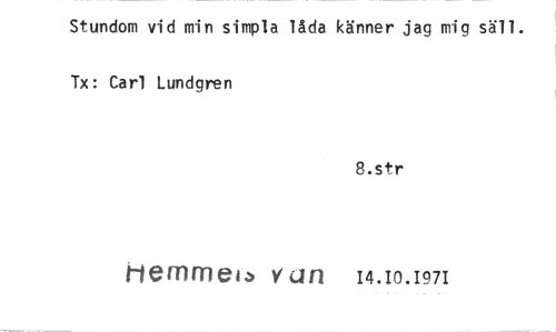 //// Stundom vid min simpla låda känner jag mig säll. Tx: Carl Lundgren //// 8.str //// hemmen van 14.10.1971