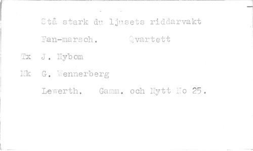 //// C tå stark du ljn.sets riddarvakt //// Fan-marsch. Qvartett //// J. Nybom G. Ifennerberg //// Le-.^erth. Gamm. och Nytt No 25