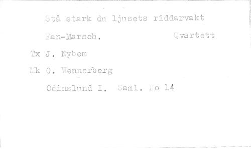 //// Stå stark du ljusets Fan-Marsch. //// Tx J. Nybom Hk G. Wennerberg //// Odinslu.nd I. Sami. //// riddarvakt //// Qvartett //// lo 14