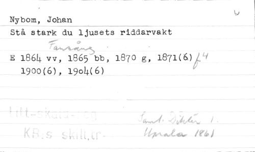 //// Nybom, Johan //// Stå stark du ljusets riddarvakt E l86ij vv, 1865 bb, 1870 g, 1871(6)/^ //// 1900(6), 190^(6)