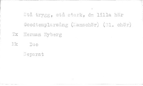 //// Stå trygg, stå stark, du lilla här Goodtemplarsång (Lanschör) (31. chör) Herman Nyberg D: o Separat