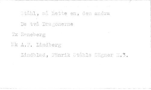 //// så hette en, den andra De två Dragonerne x Runeberg k A.F. Lindberg //// Lindblad, Fänrik Ståhls Cägner