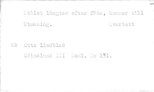//// Ltålet längtar efter föda, kommer till //// Utmaning. Qvartett //// Otto Lindblad //// Odinslund 111 Sami. Fo 151.