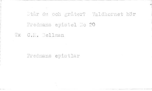 //// 5tår du och gråter? Valdhornet hör Fredmans epistel Jo 20 Tx C.1-1. Telliaan //// Fredmans epistlar