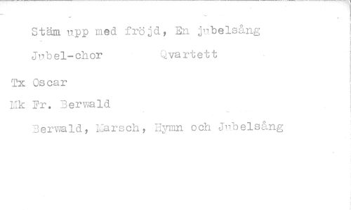 //// Stäm upp med fröjd, En jubelsång Jubel-chor Qvartett //// Tx Oscar Hk Fr. Berwald //// 3erwald, I^arsch, Hymn och Jubelsång