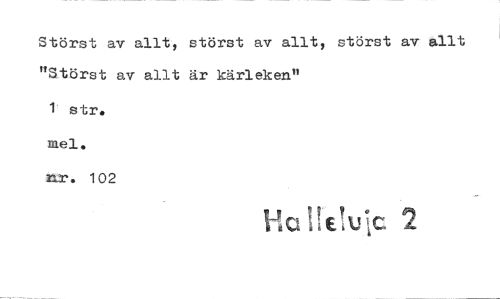 //// Störst av allt, störst av allt, störst av allt "Störst av allt är kärleken" //// 1 str. mel. xnr. 102