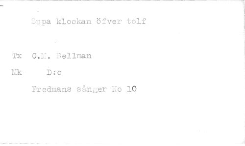 //// Cupa klockan öfver tolf //// C.E. 3ellman D:o //// Fredmans sånger No 10