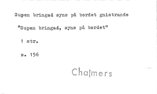//// Supen bringad syns på bordet gnistrande "Supen bringad, syns på bordet" //// 1 str. s. 156 //// Cha[mers