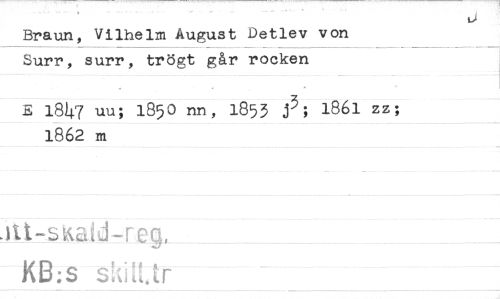 //// Braun, Vilhelm August Detlev von Surr, surr, trögt går rocken //// E 18^7 uu; 185O nn, 1853 l86l 1862 m //// zz