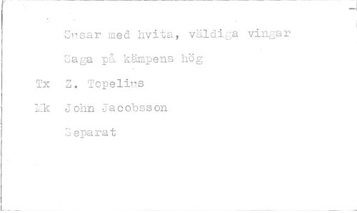 //// Susar med hvita, väldiga vingar Saga på kämpens hög Tx Z. Topeliu.s Lik John Jacobsson Separat