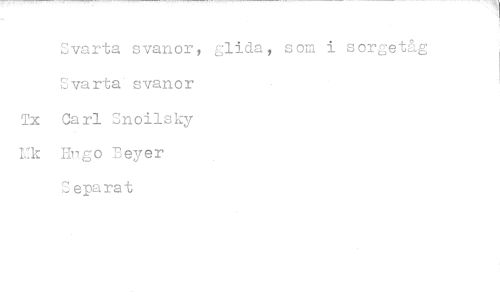 //// Svarta svanor, glida, som i sorgetåg Svarta svanor Tx Carl Snoilsky Hk Engo Beyer Separat