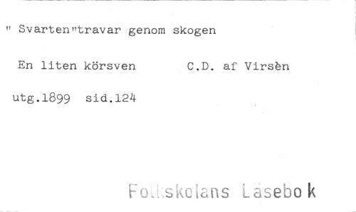 //// Svarten"travar genom skogen //// En liten körsven C.D. af Virsbn //// utg.1899 sid.124 //// Fou.sko(arts Läsebok