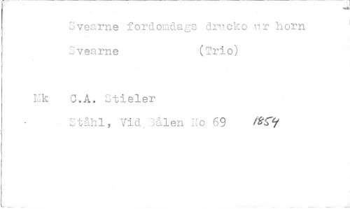 //// Cvearne fordomdags dmcko Svearne (Trio) //// k C.A. Stieler //// Ståhl, Vid lålen No 69 //// nr horn