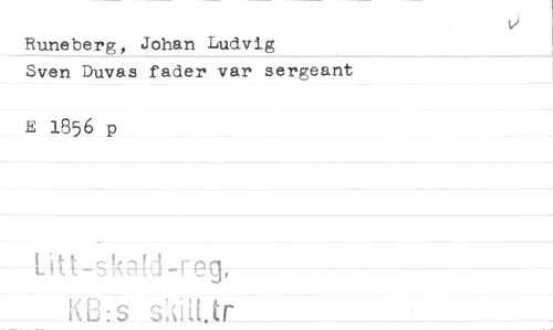 //// Runeberg, Johan Ludvig Sven Duvas fader var sergeant //// E 1856 p //// Litt-skaM-reg, K8:s skiti.tr