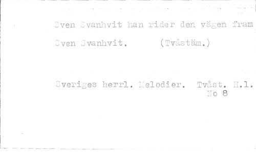 //// Cven Zvanhvit han rider den vägen fram Cven Gvanhvit. (ivåstäm.) //// Sveriges herrl. Helodier. Tvåst. H.l. //// No 8