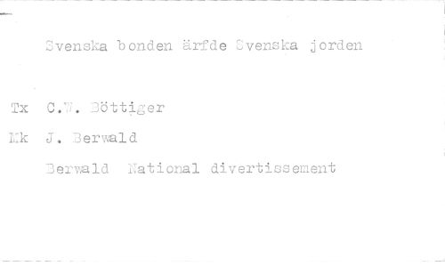 //// Svenska bonden ärfde Svenska jorden //// C.B. Bottiger J. Berwald //// Bervald National divertissement