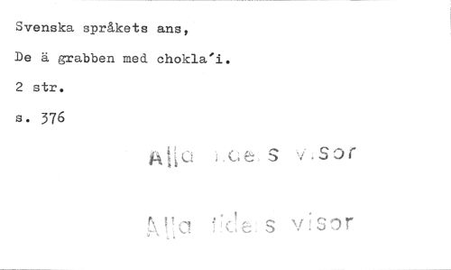//// Svenska språkets ans, //// De ä grabben med chokla'i. //// 2 str. s. 376 //// i.ce s v.sor