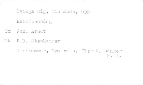 //// Svinga dig, min ande Passionssång J oh. Arndt P.U. Ctenhanmiar Stenhammar, Nya en o //// opp //// fl erE //// sanger H. 1.
