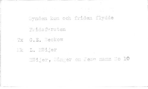 //// Uynden kom och friden flydde Fridsfrrsten Tx G.3. leskow I.lk L. Höijer //// Iloijer, S&nrjer om Jesn namn Ho 10
