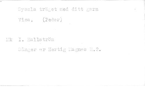 //// Syssla träget med ditt garn Visa, (Peder) //// k I. Hallström //// Sånger -tr Hertig 1.1a gnus H.2.