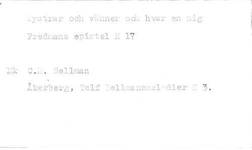 //// ^ystrar och vänner och hvar en mig Fredmans epistel H 17 //// C.Li. Bellman //// Åkerberg, Tolf lellmansmel odier H