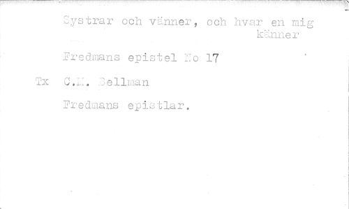 //// --- - „---„ //// Systrar och vänner, och hvar en mig //// känner //// Fredmans epistel No 17 G.T. lellman Fredmans epistlar.
