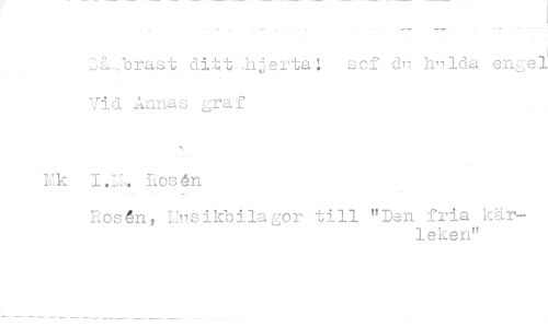 //// Då-,brast ditt .hjertal scf dn h^lda engel Vid Annas graf //// k 1,1". Rosén //// Rosén, Unsikbilagor till "Den fria kärleken"
