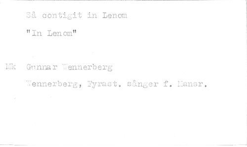 //// Så contigit in Lenom "In Len om" //// k Gunnar 'Jennerberg //// 1'ennerberg, Fyrast. sånger f //// Hansr.