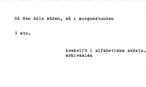 //// Så den ädla säden, så i morgonstunden 3 str. //// Avskrift i alfabetiska avdeln. arkivsalen