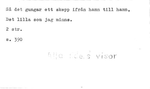 //// Så det gungar ett skepp ifrån hamn till hamn, Det lilla som jag minns. //// 2 str. s. 390 //// *' ':c : s visor