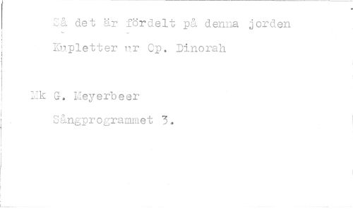 //// Så det är fordelt på denna jorden Kupletter u.r Cp. Dinorah //// k G, Heyerbeer //// Sångprogrammet 5.