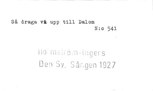 //// Så draga vm upp till Dalom //// N:o 541 //// ho' msL; ä.n-mgers Den Sv. Sången 1927