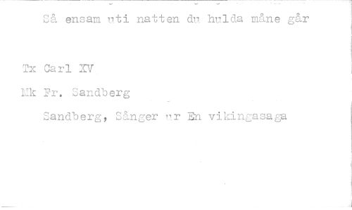 //// Så ensam uti natten du hulda måne går //// Tx Carl XV Hk Fr. Sandberg //// Sandberg, Sånger ur En vikingasaga