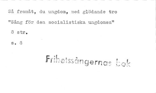 //// Så framåt, du ungdom, med glödande tro "Sång för den socialistiska ungdomen" //// 8 str. s. 8