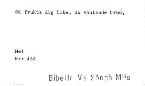 //// Så frukta dig icke, du väntande brud, //// Mel //// N:r 488 //// Bibe ar Vs Sår.nb M"s