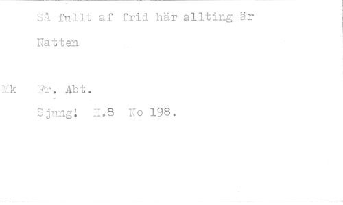 //// Så fullt af frid här allting är //// Natten //// Hk Fr. Abt. //// Sjung: H.8 No 198.
