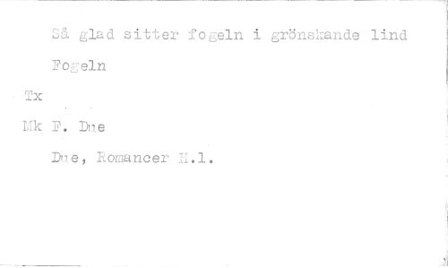 //// Så glad sitter fogeln i grönskande lind Fogeln //// Tx //// Mk F. Due //// Dne, Romancer H.l.