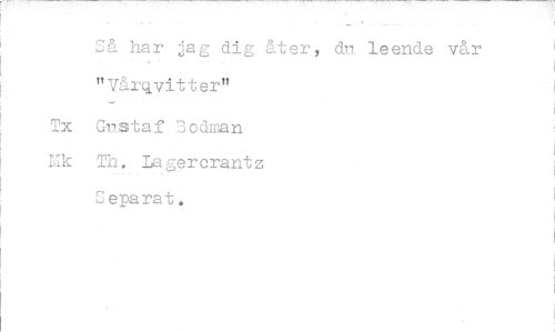 //// Så har jag dig åter, du leende vår "Vårqvitter" //// Tx Gustaf 3odman Mk Th. Lagercrantz Separat.