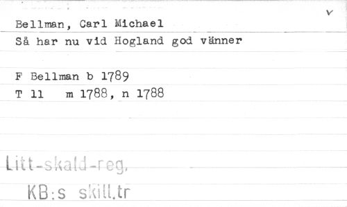 //// Bellman, Carl Michael //// Så har nu vid Högland god vänner //// F Bellman b 1789 T 11 m 1788, n 1788 //// Litt-skaU-reg, KB.s skiH.tr