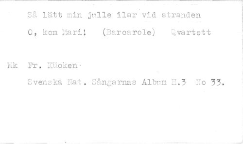 //// Så lätt min jrlle ilar vid stranden 0, kom MarH (Barcarole) Qvartett //// Fr. Sucken //// Svenska Nat. Sångarnas Altum E.5 No