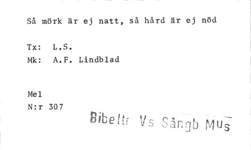 //// Så mörk är ej natt, så hård är ej nöd //// Tx: L.S. //// Mk: A.F. Lindblad Mel //// N:r 307
