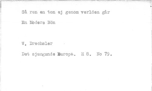 //// Så ren en ton ej genom verlden går En Ma ders Bön //// W. Drechsler //// Det sjungande Buropa, H 8. No 79.